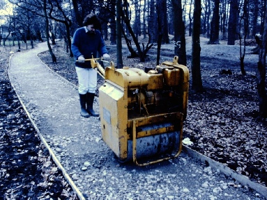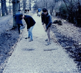Outside the scheduled area, to the east of the outer bank, a path was constructed. Paths had earlier developed on the banks themselves and this had contributed considerably to erosion. The new path extended around the monument to the north and south, to the playing field and allotments beyond.