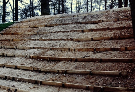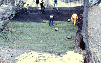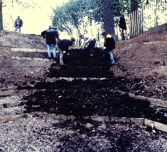 Boarding was installed around the ramparts to retain the soil. Covered initially with turf or seeded with grass, in time a more-suitable vegetation would establish itself in the new layer. Movement on the site would become progressively lessened.